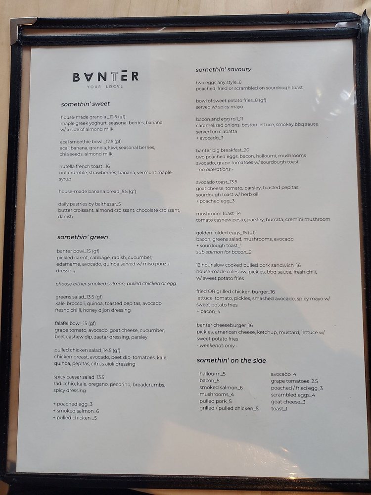 With a friendly atmosphere, attentive service, and a charming outdoor seating area, Banter is the perfect spot for a leisurely brunch or morning coffee. Don't miss out on the chance to try their mouthwatering dishes and experience the unique charm of Banter for yourself!
